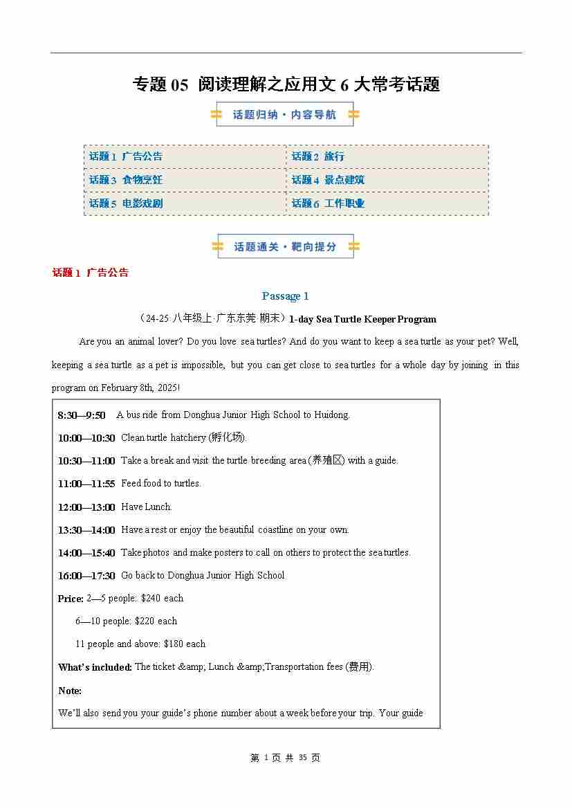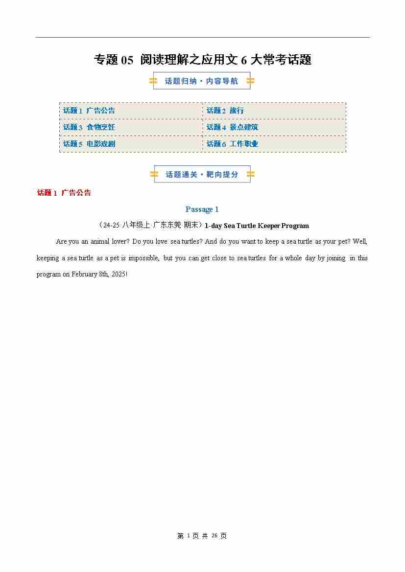 考前押题05 阅读理解之应用文6大常考话题(期末复习专项训练)(原卷版)