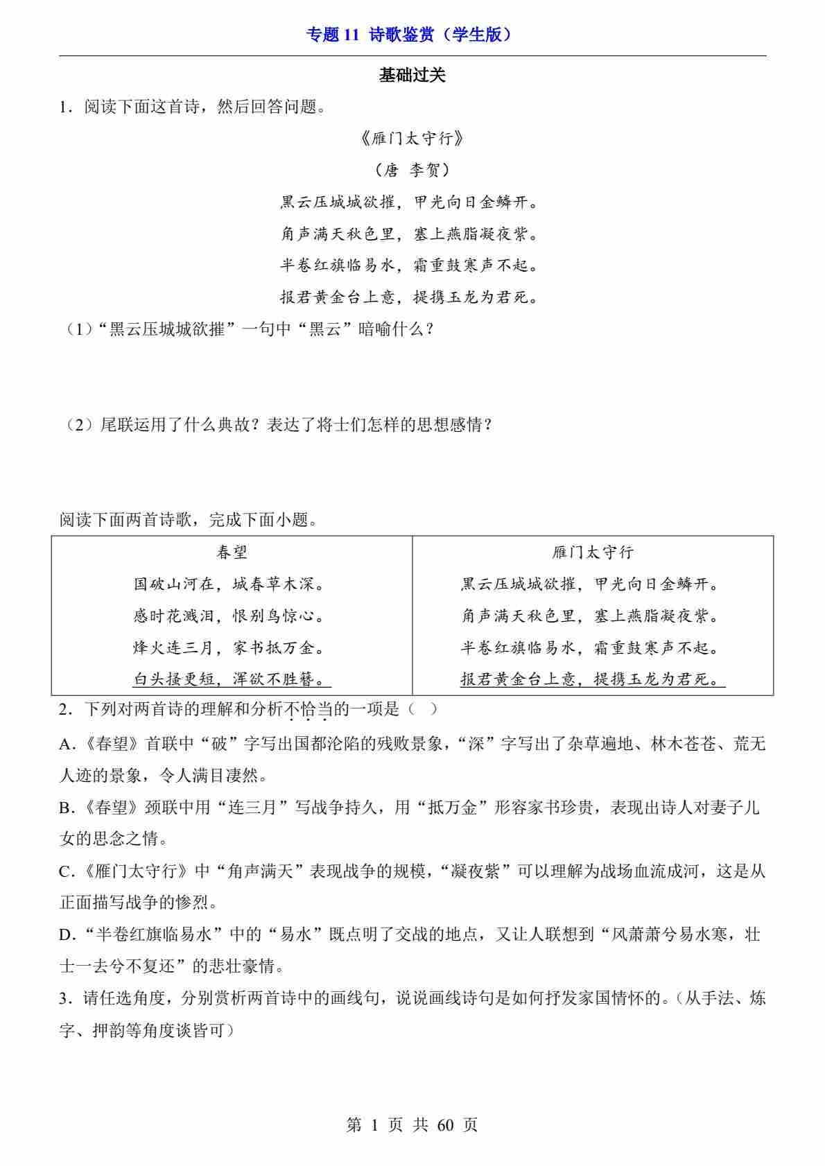 专题11 诗歌鉴赏PDF