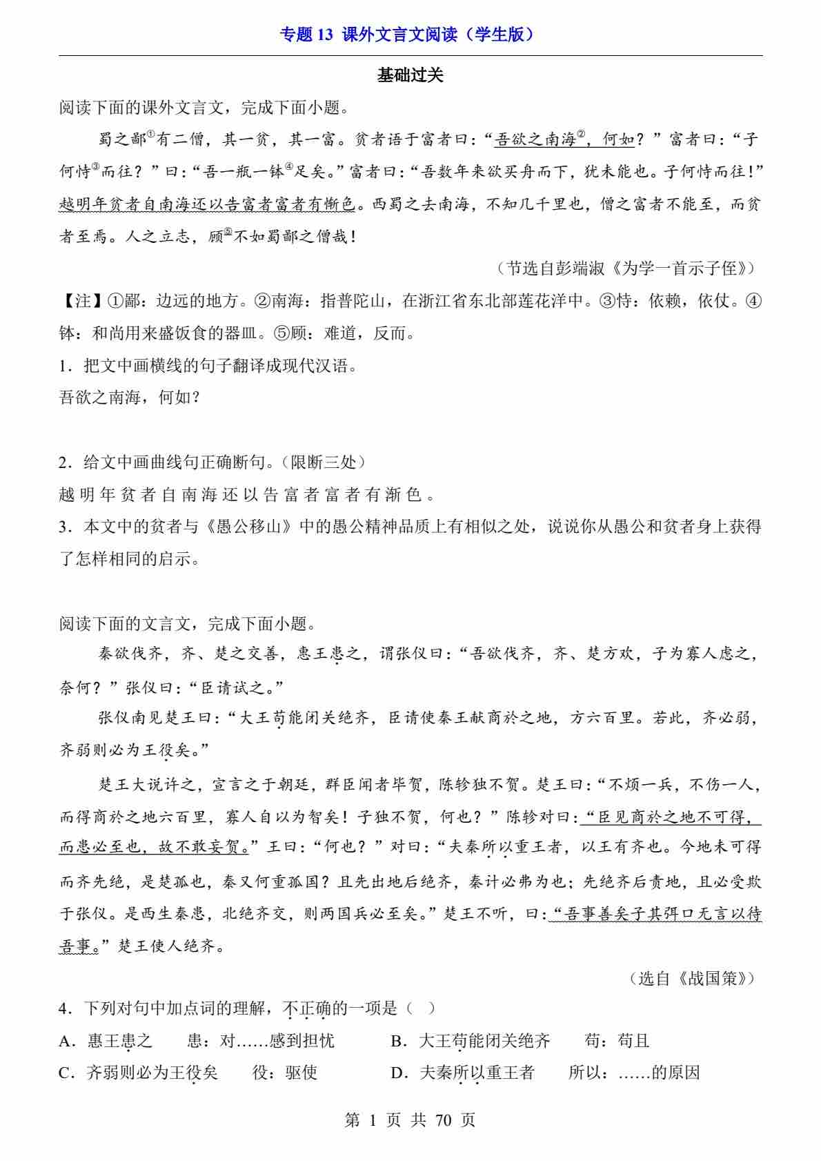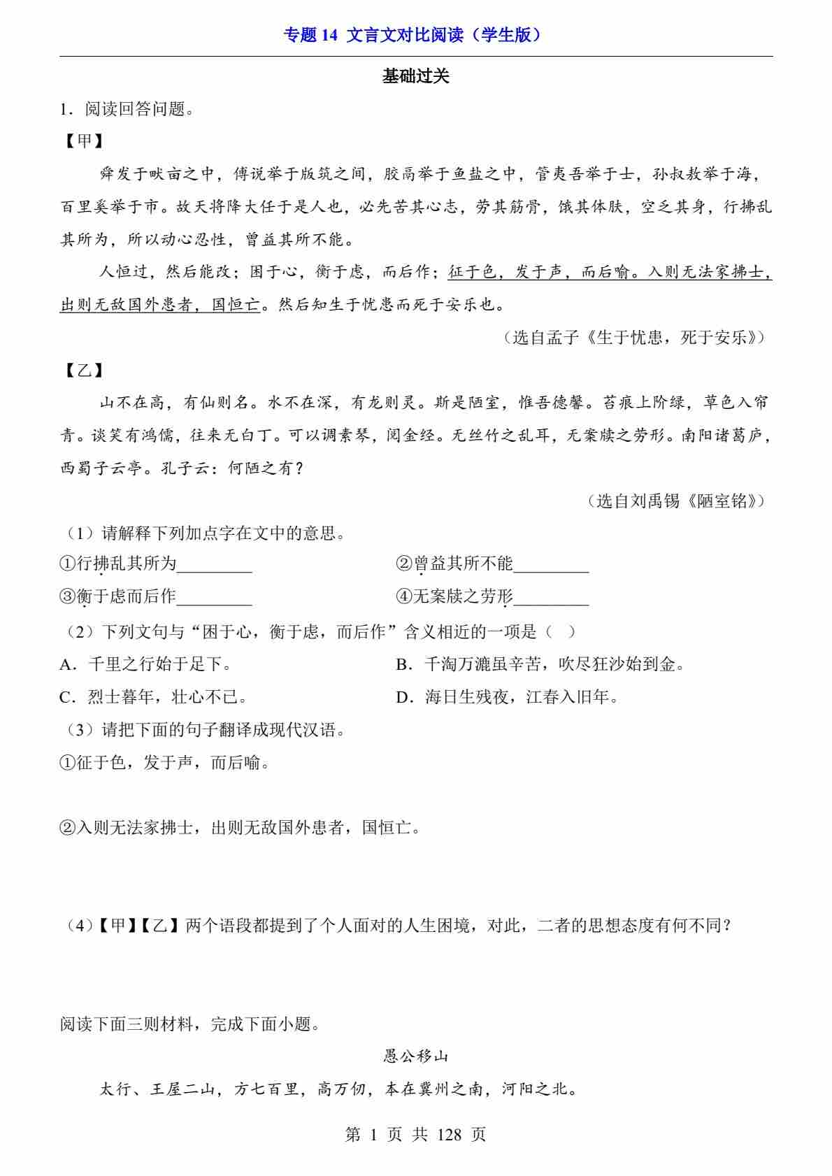 专题14 文言文对比阅读PDF