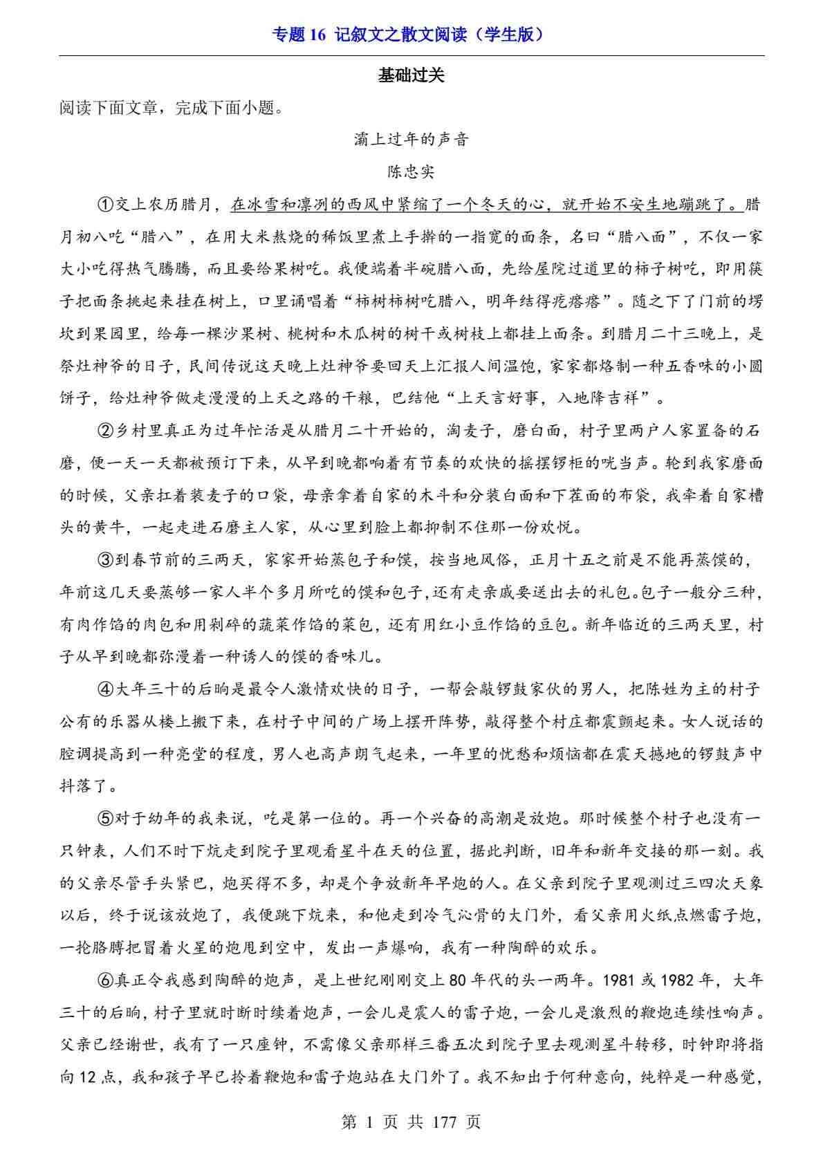 专题16 记叙文之散文阅读PDF