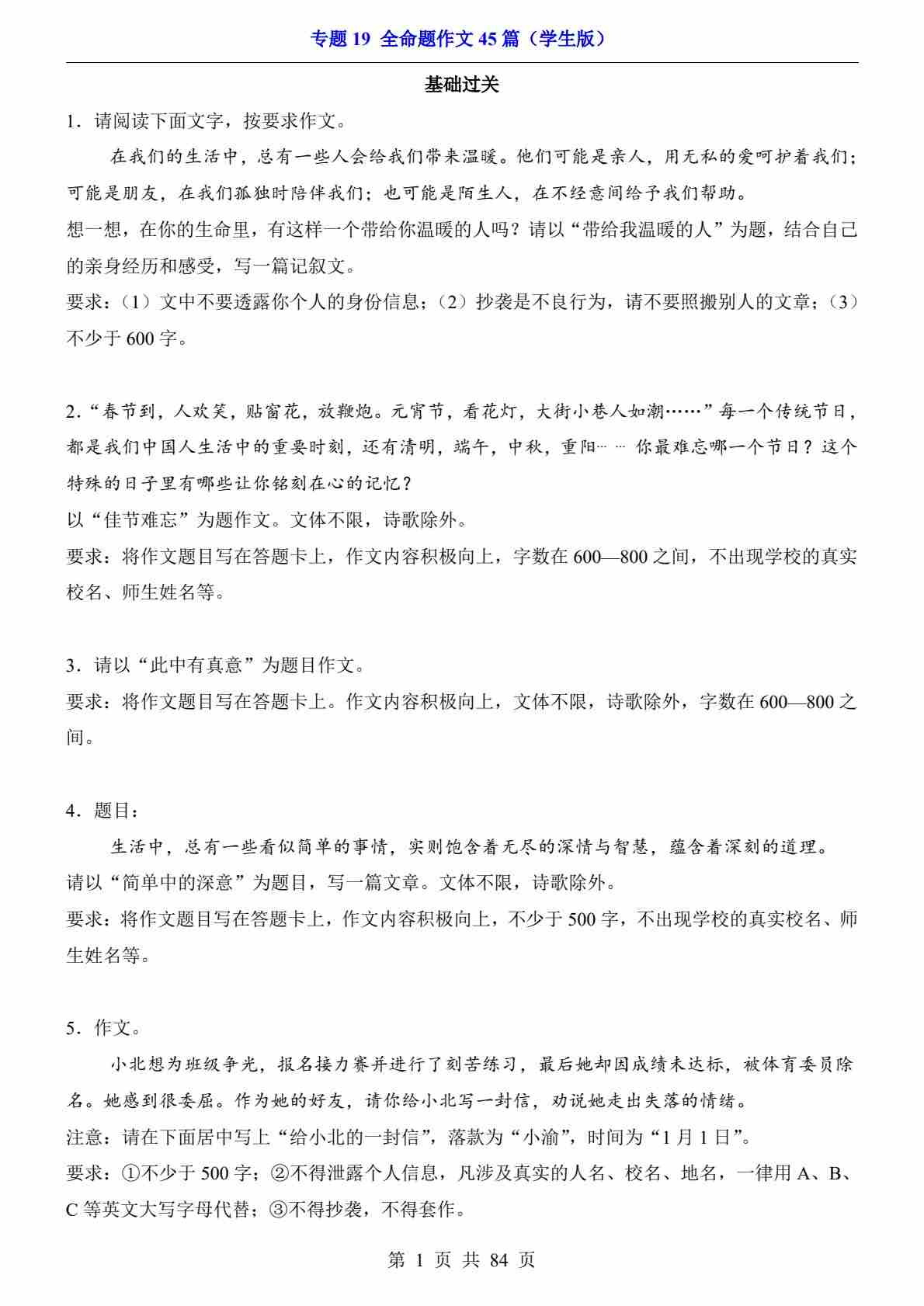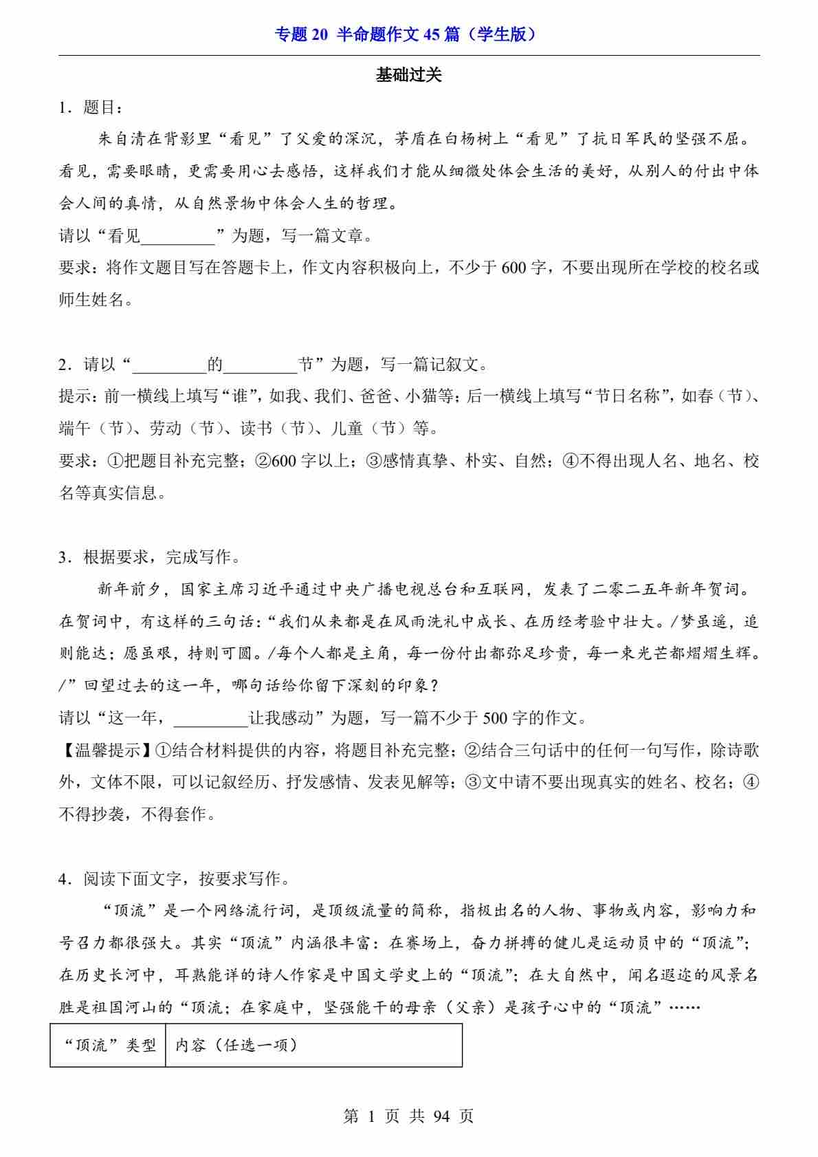专题20全命题作文45篇