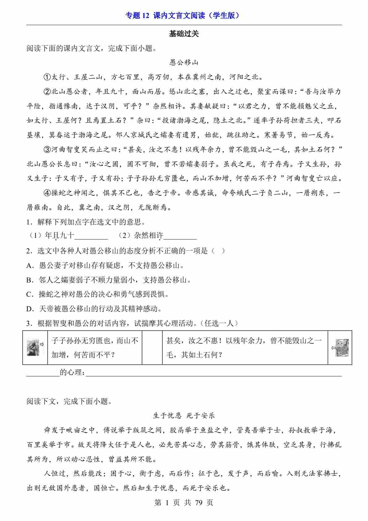 专题12 课内文言文阅读PDF