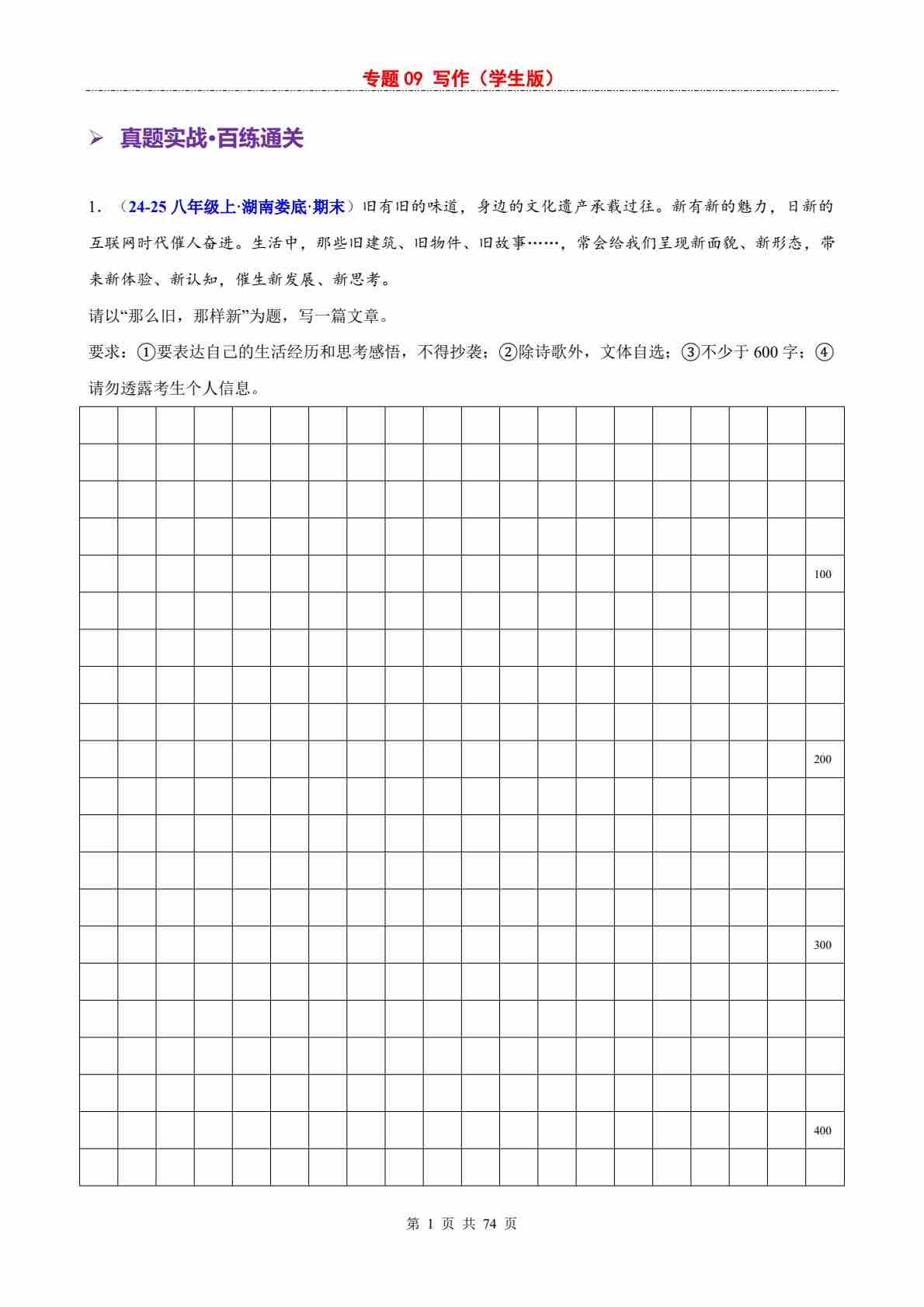 【专项训练】专题09 写作
