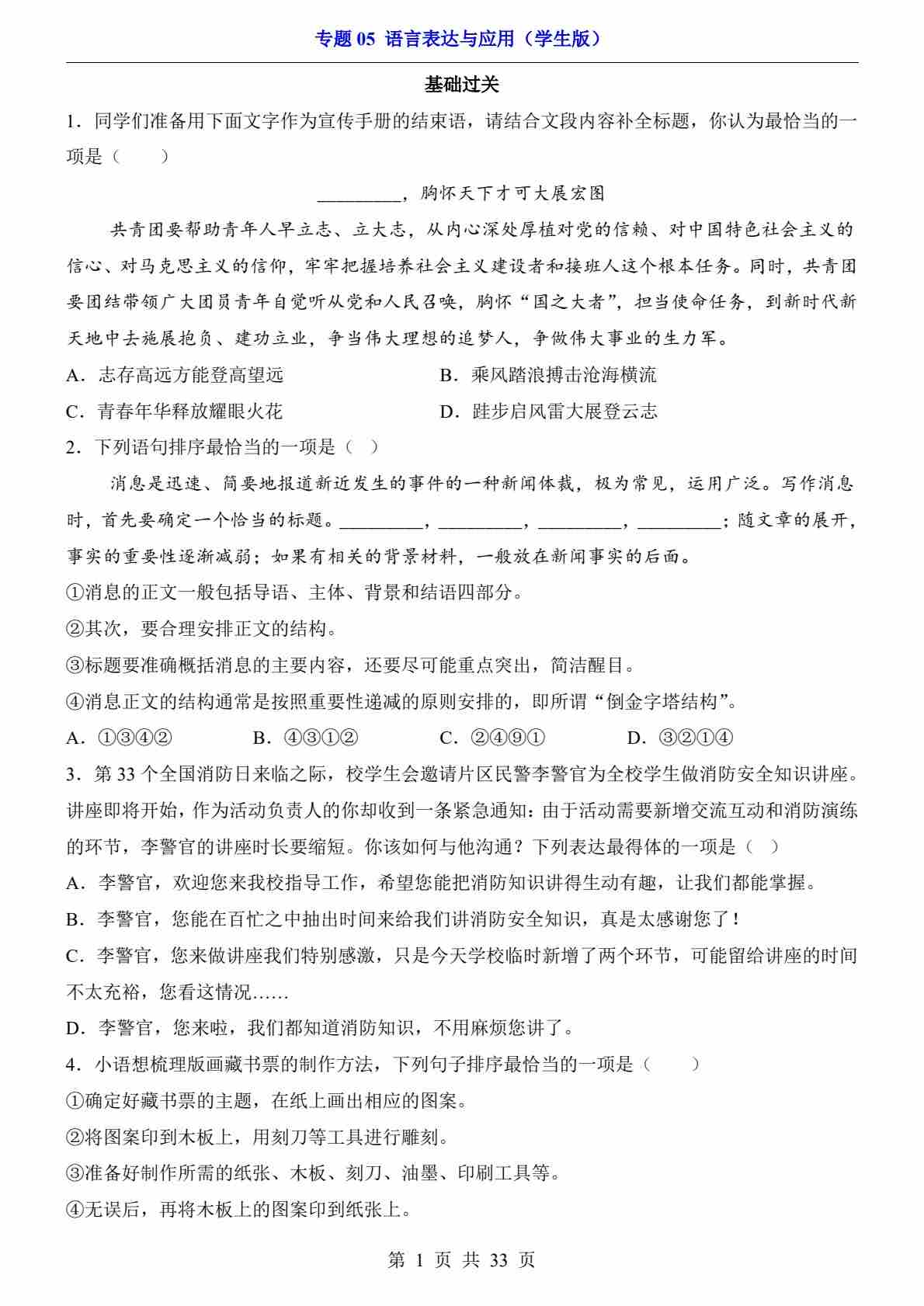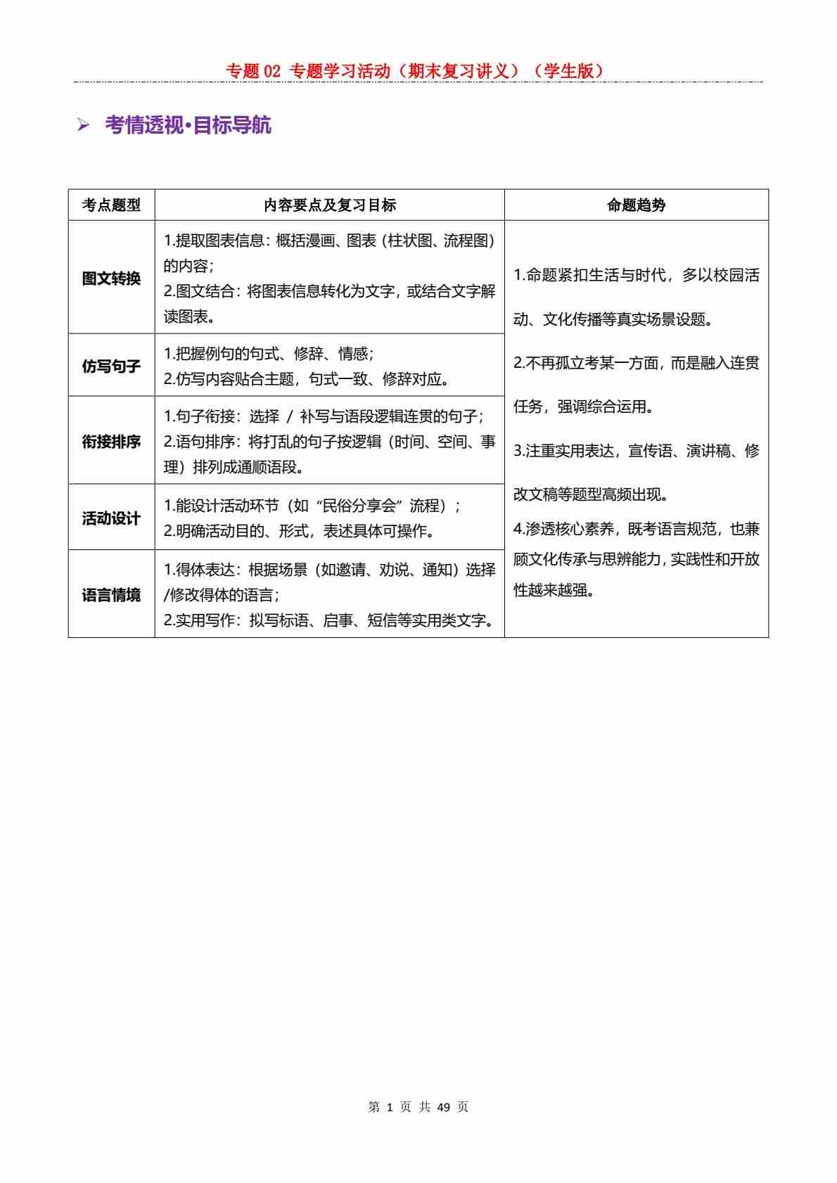 专题05 语言表达与应用PDF