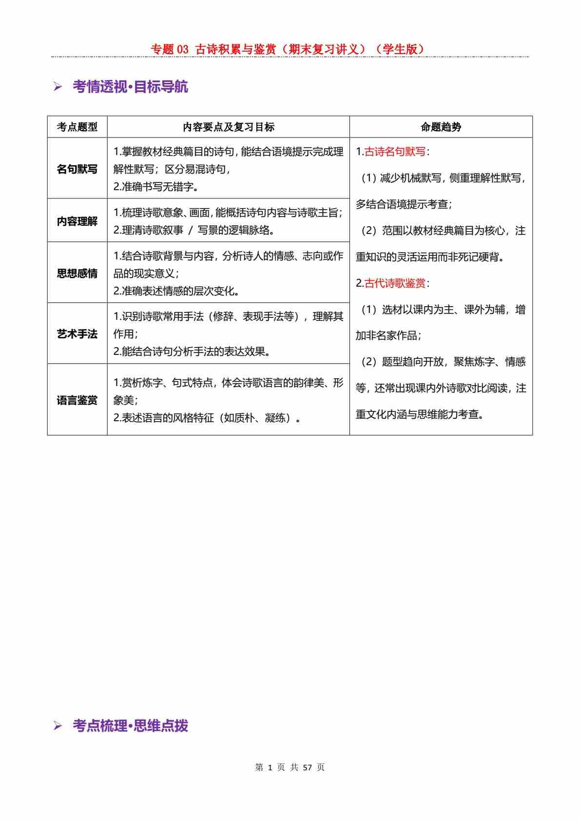 【复习讲义】专题03 古诗积累与鉴赏