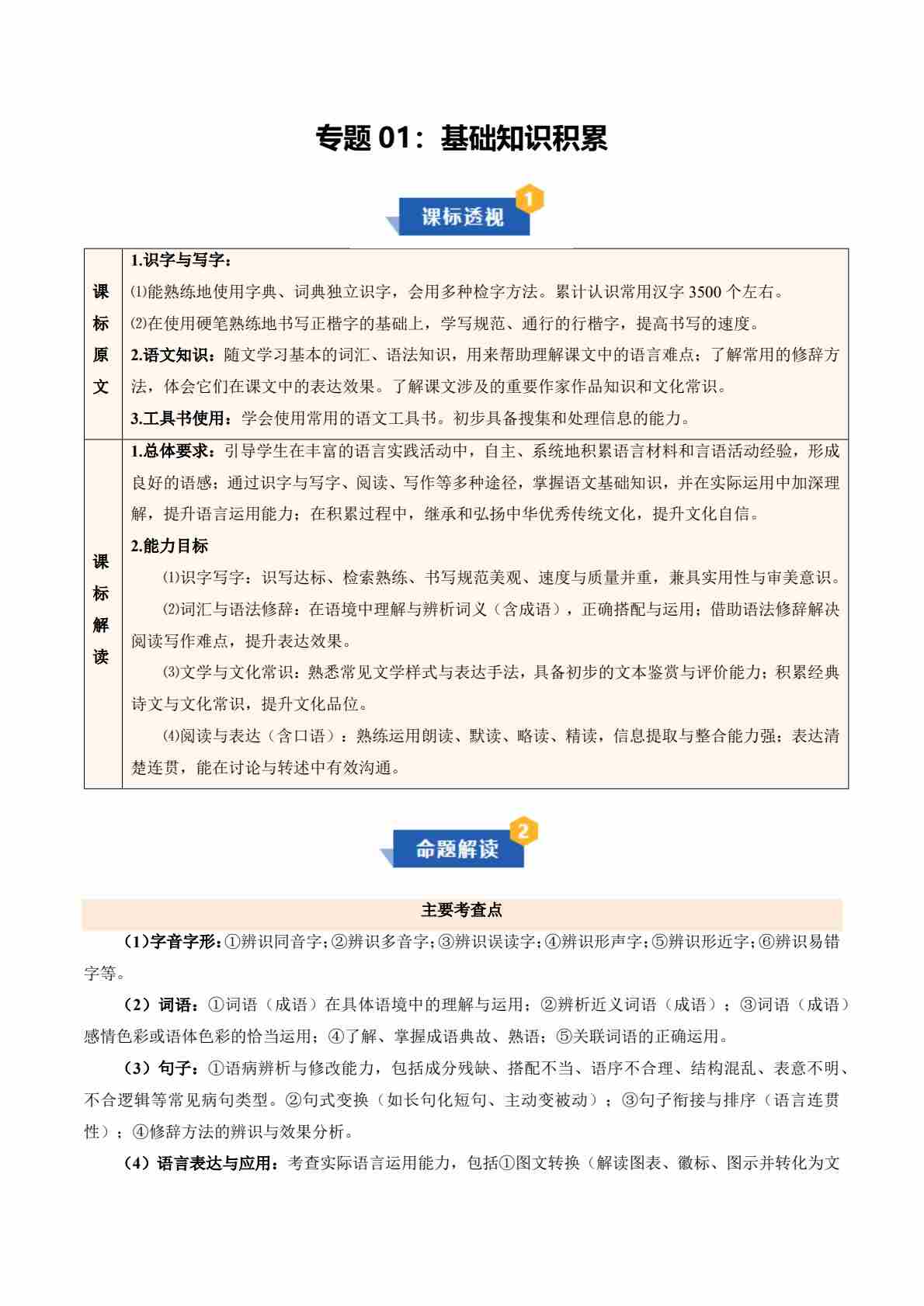 【知识清单】专题01 基础知识积累