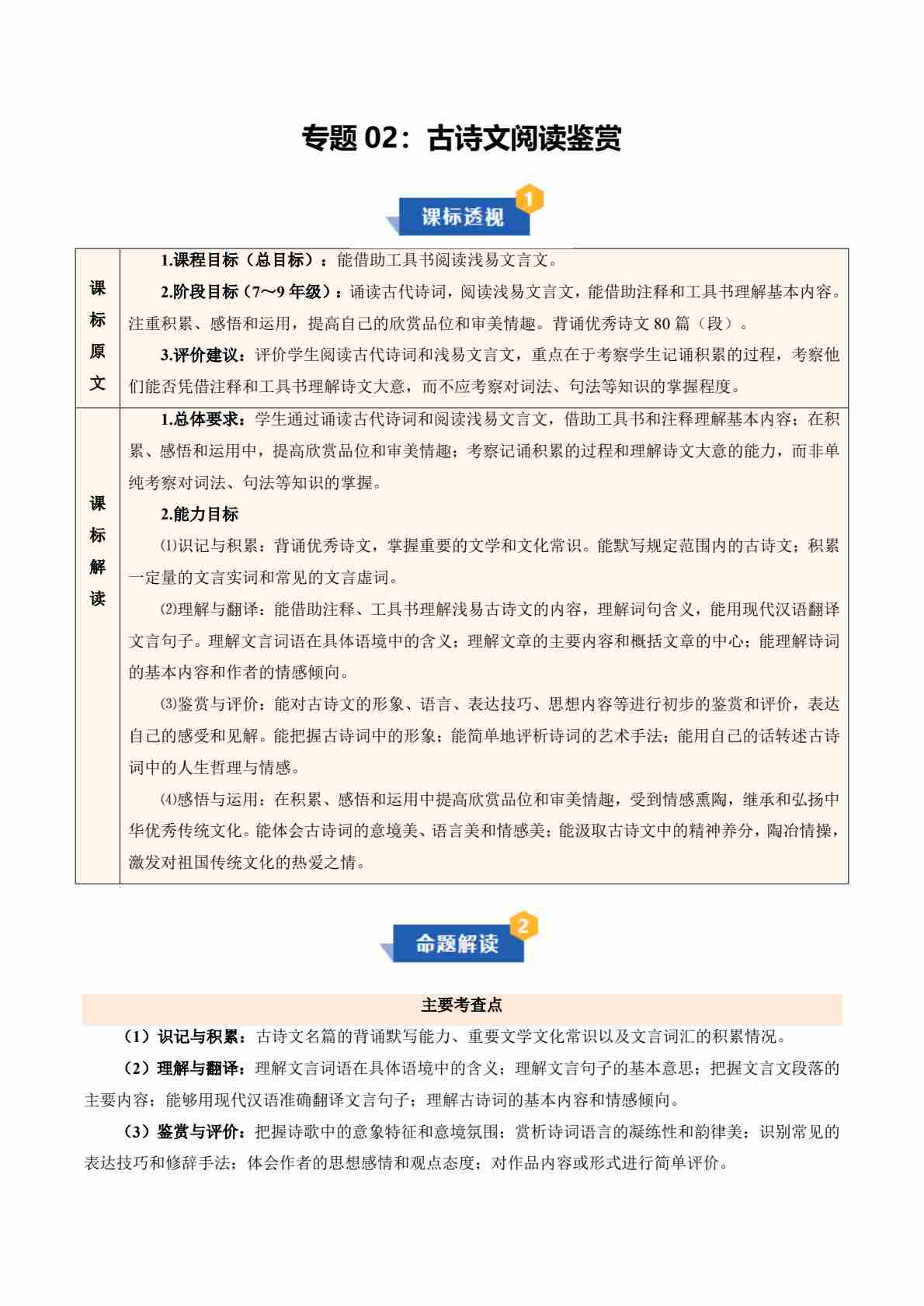 【知识清单】专题02 古诗文阅读鉴赏
