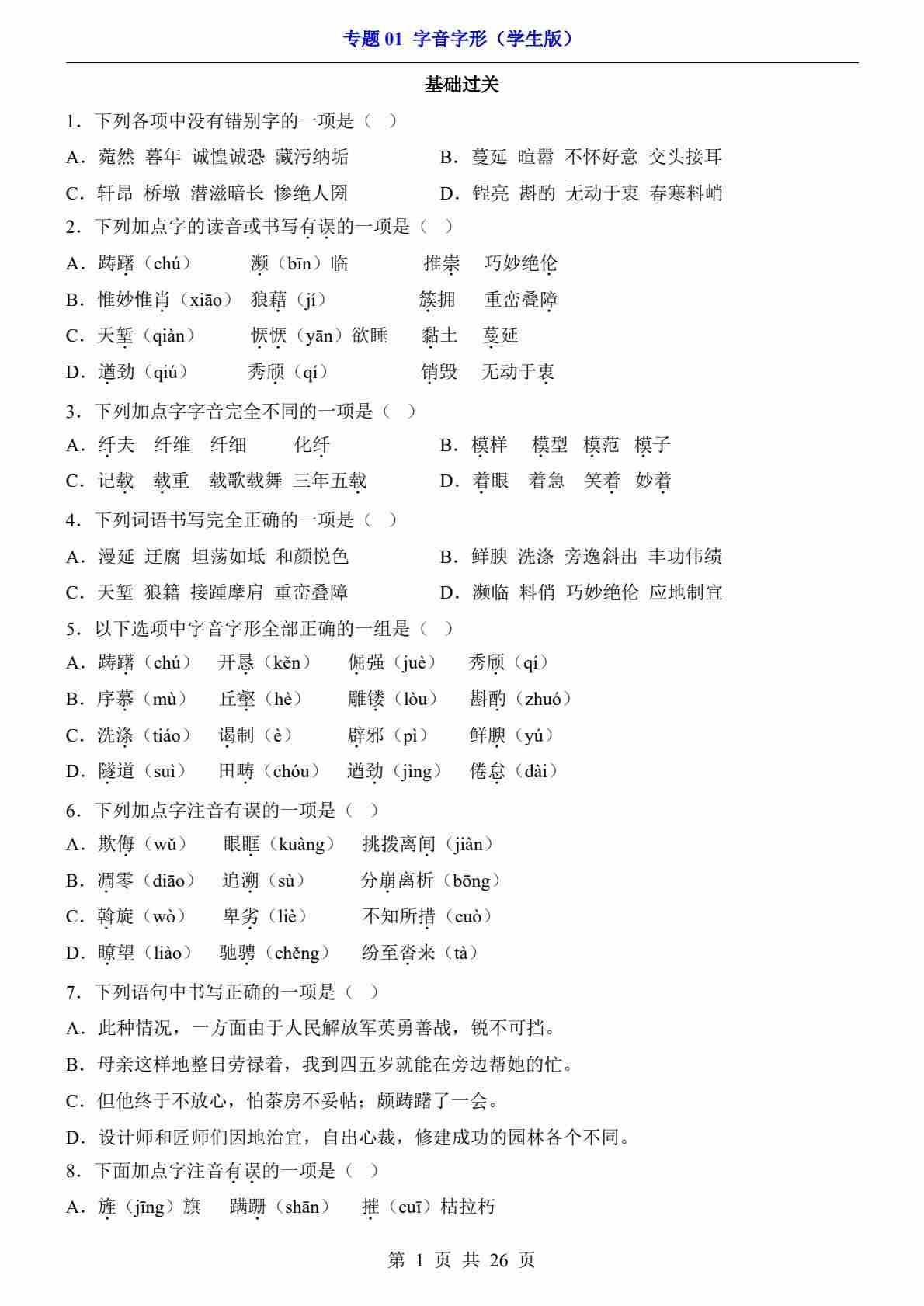 专题01 字音字形PDF