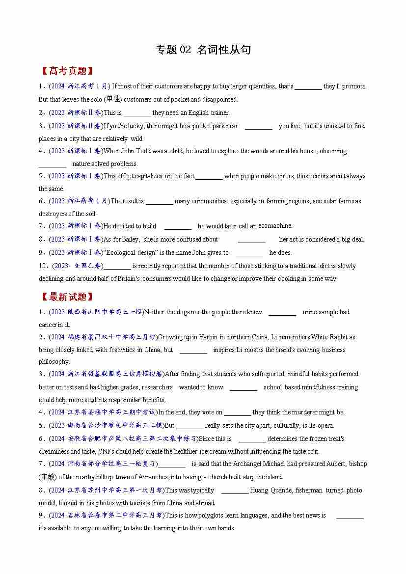 专题02 名词性从句练习(学生版)