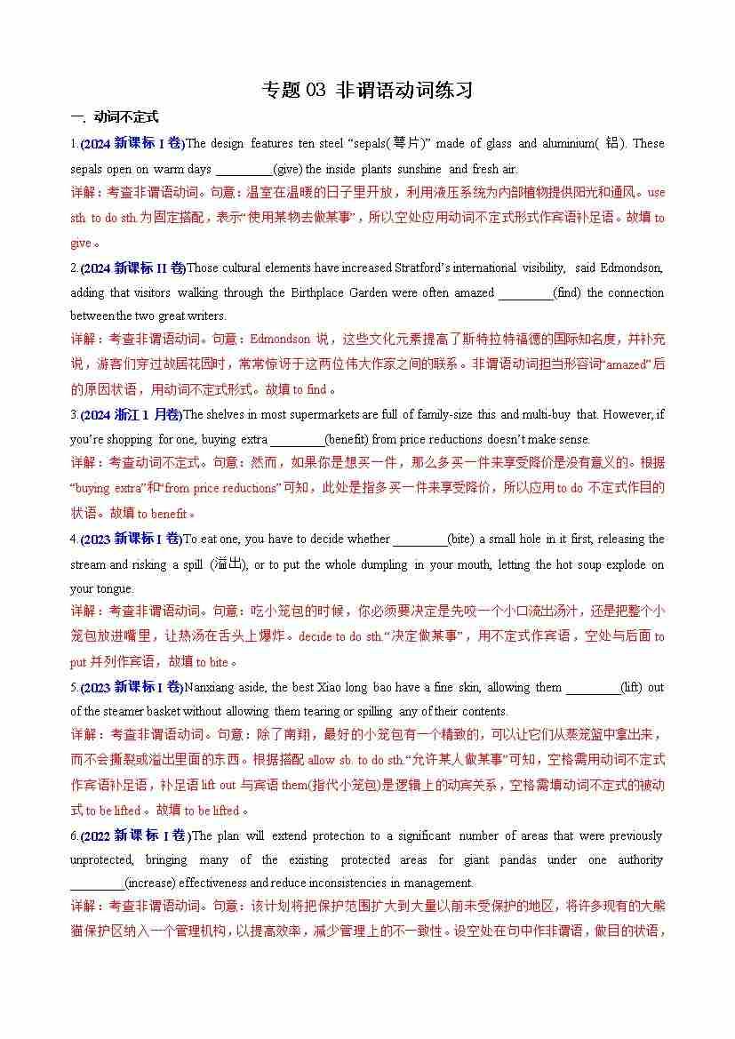 专题03 非谓语动词练习(学生版)