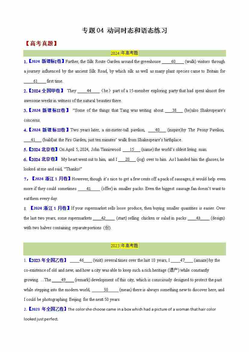 专题04 动词时态和语态练习(学生版)