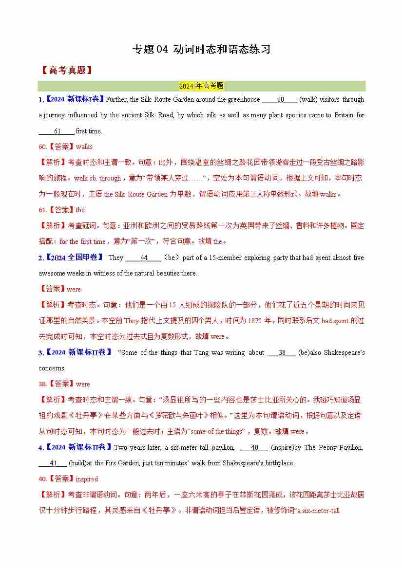 专题04 动词时态和语态练习(教师版)