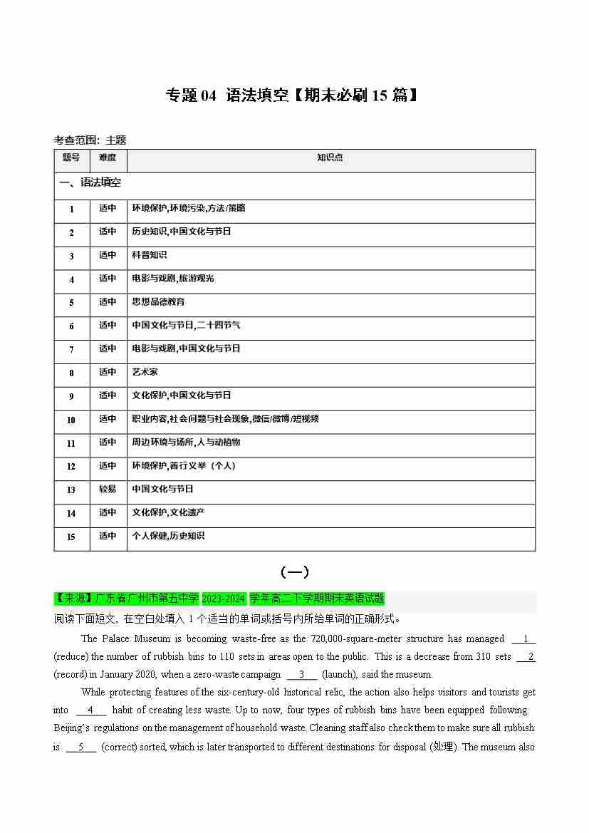 专题04 语法填空 (期末必刷15篇)(教师版)