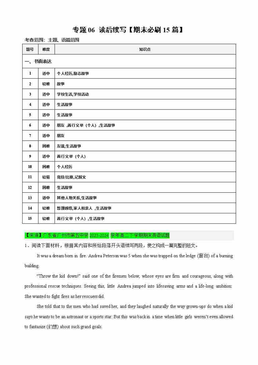 专题06 读后续写(期末必刷15篇) - (人教版2019)(教师版)