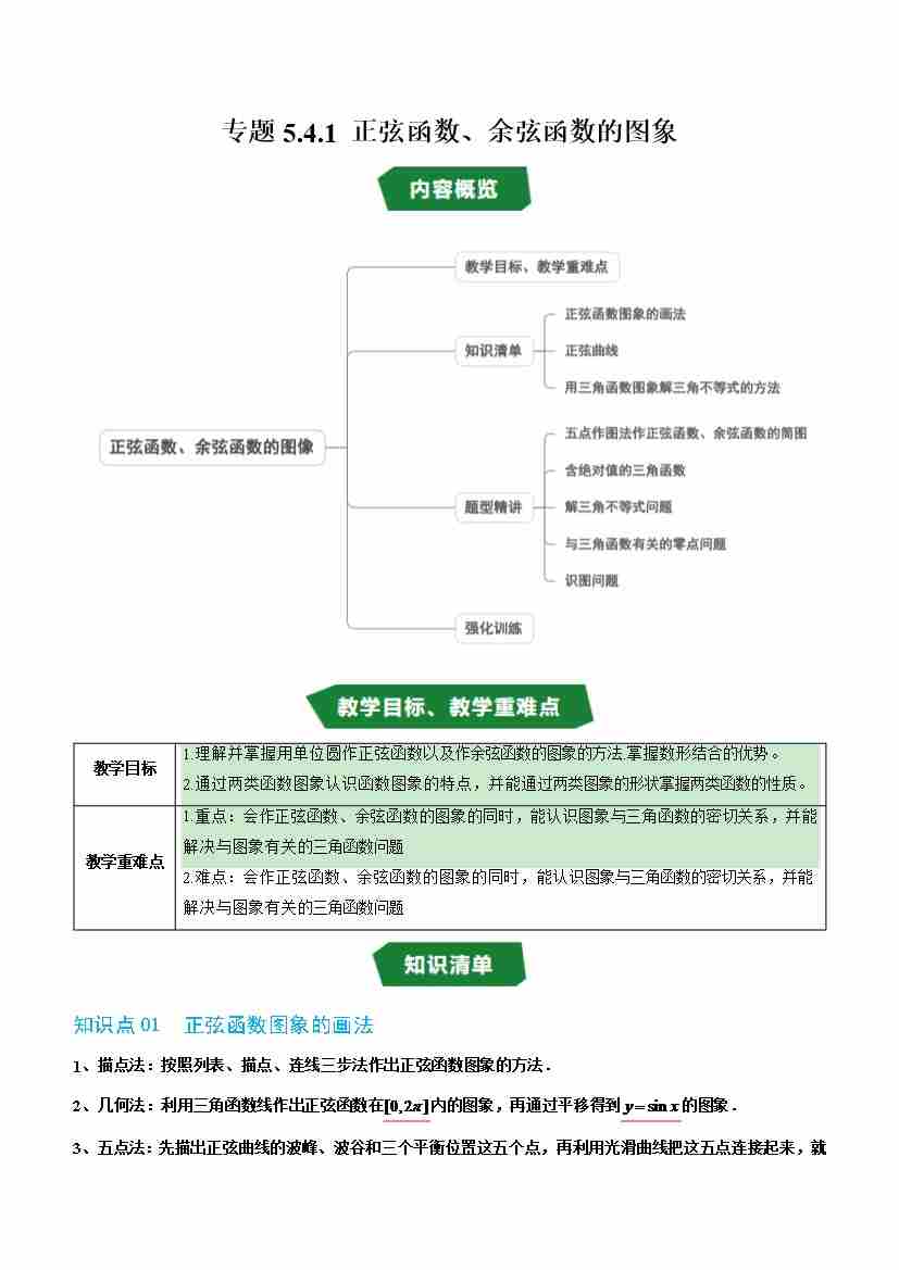 专题5.4.1 正弦函数、余弦函数的图象(高效培优讲义)(教师版)