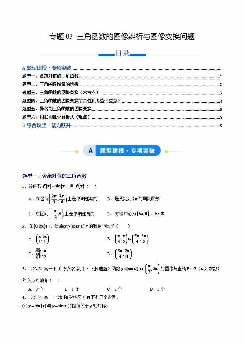 专题03 三角函数的图像辨析与图像变换问题(专项训练6大重点题型)(原卷版)