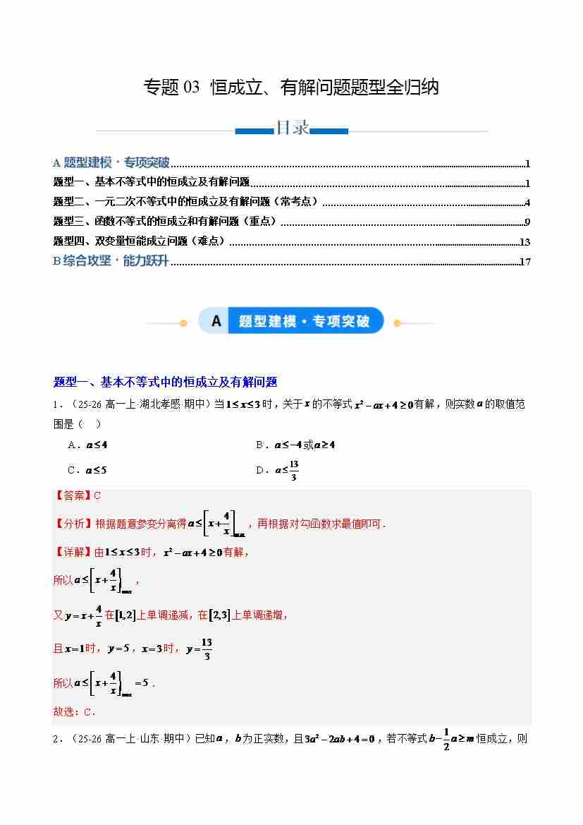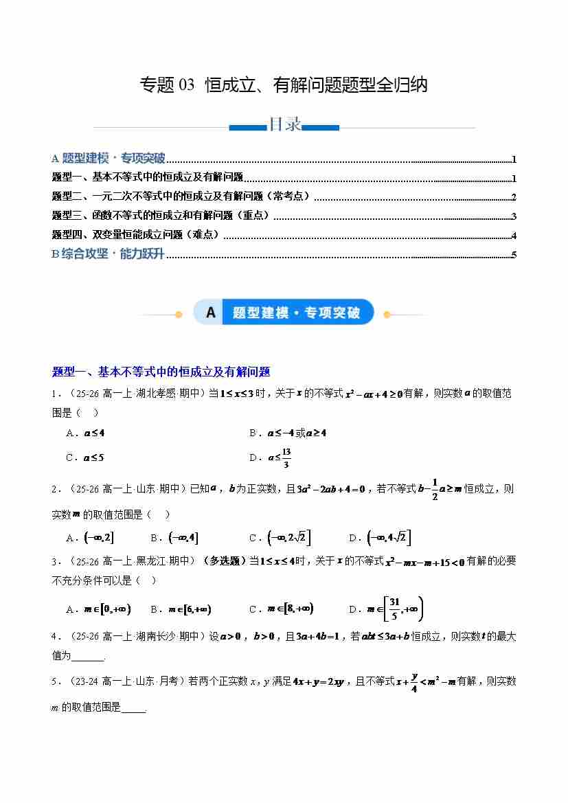 专题03 恒成立、有解问题题型全归纳(专项训练4大重点题型)(原卷版)