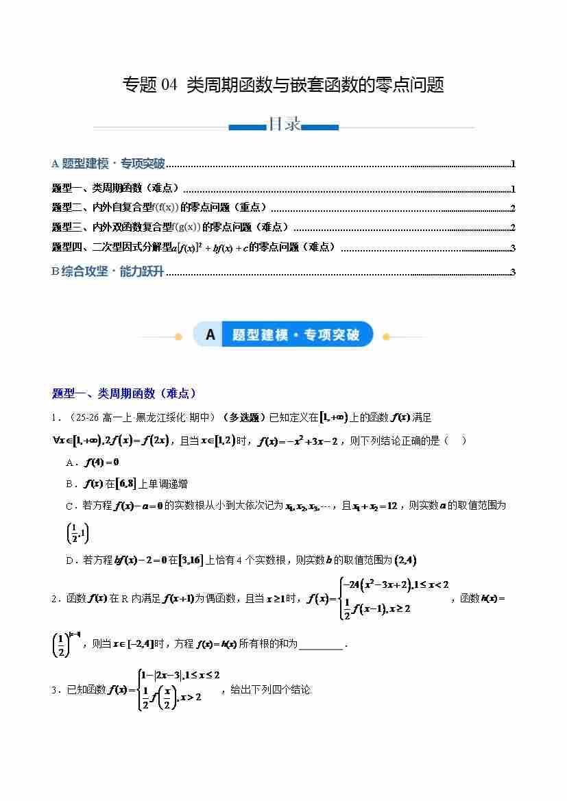 专题04 类周期函数与嵌套函数的零点问题(专项训练4大重点题型)(原卷版)