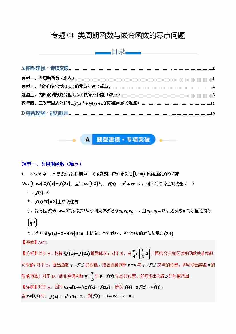 专题04 类周期函数与嵌套函数的零点问题(专项训练4大重点题型)(解析版)