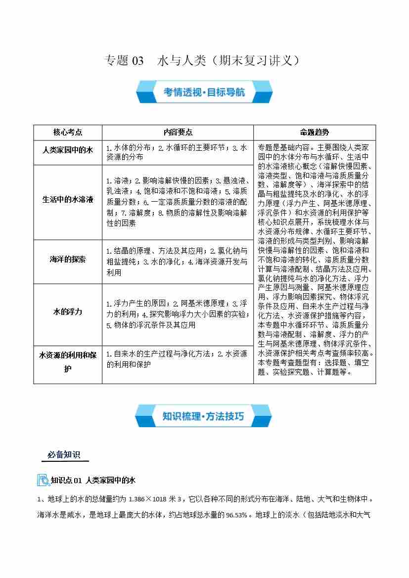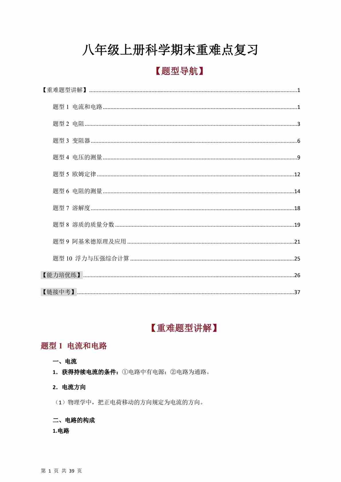2025八上科学期末重难点复习(高效培优复习讲义)(原卷版)
