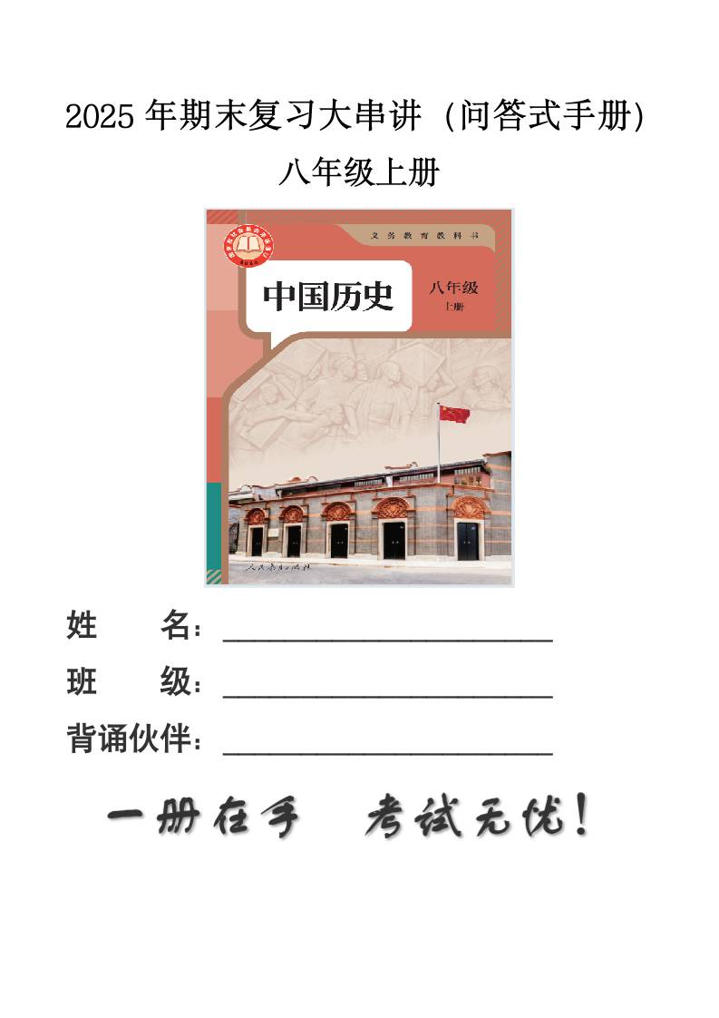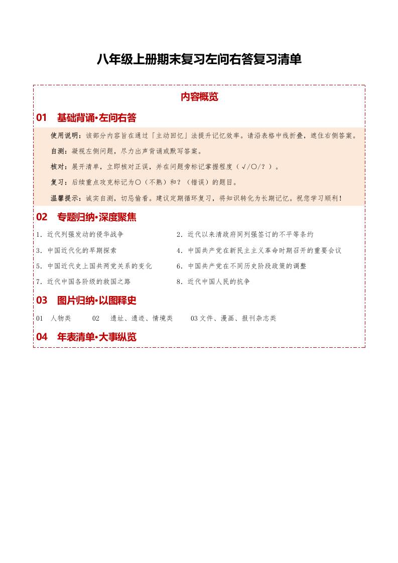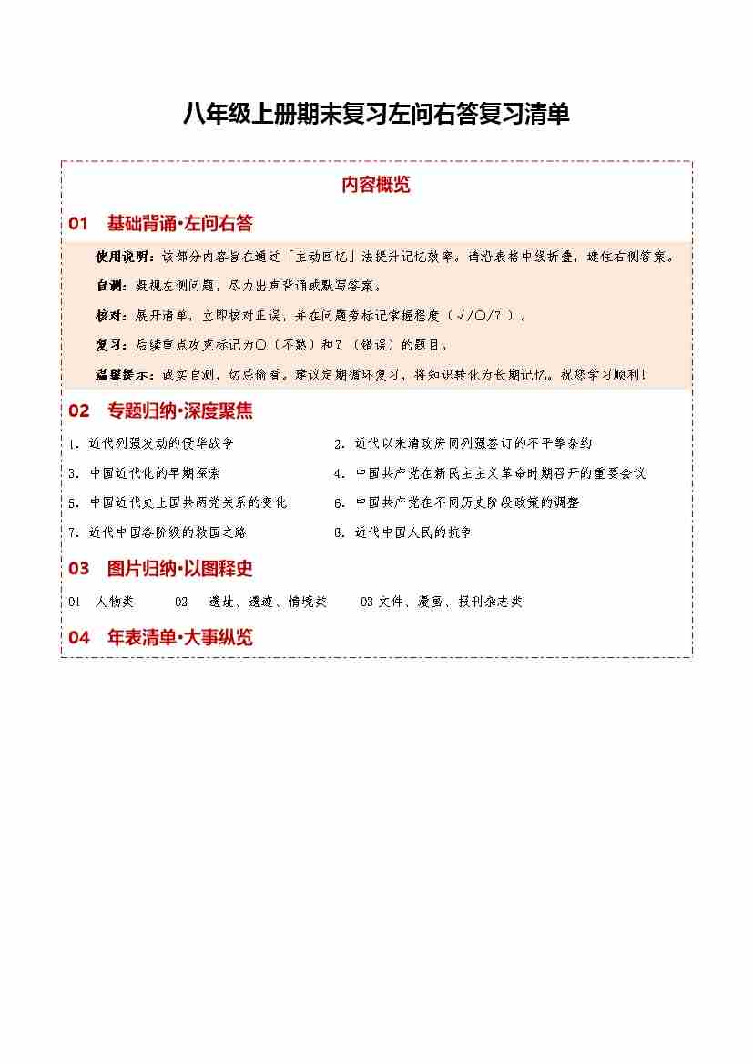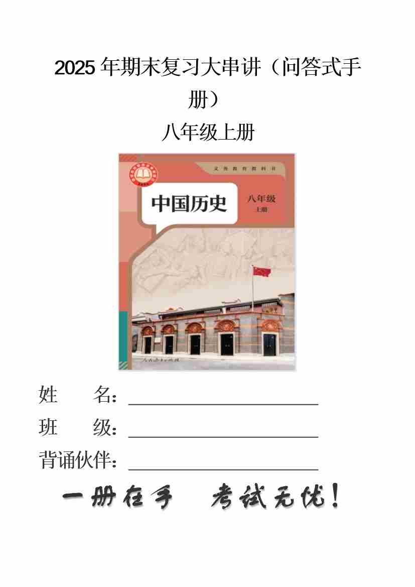 八上历史期末复习大串讲问答式手册(期末复习知识清单)
