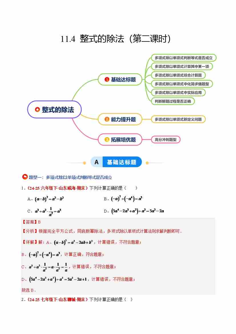 11.4 整式的除法(第2课时)(6个基础题型 1个巩固提升)(题型专练)(原卷版)