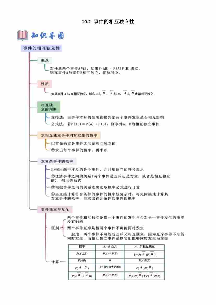 10.2 事件的相互独立性(学生版)