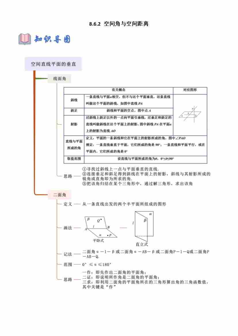 8.6.2 空间直线、平面的垂直(学生版)