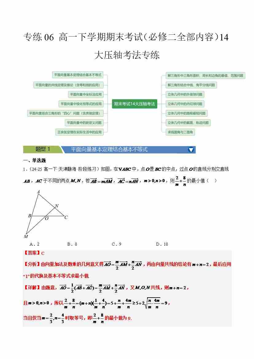 专练06 高一下学期期末考试(必修二全部内容)14大压轴考法专练教师版-(人教A版2019必修第二册)