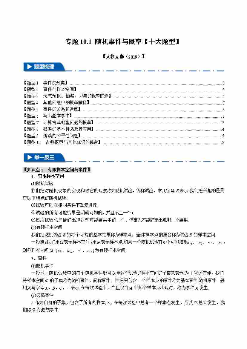 专题10.1 随机事件与概率(十大题型)(举一反三)(人教A版2019必修第二册)(教师版)