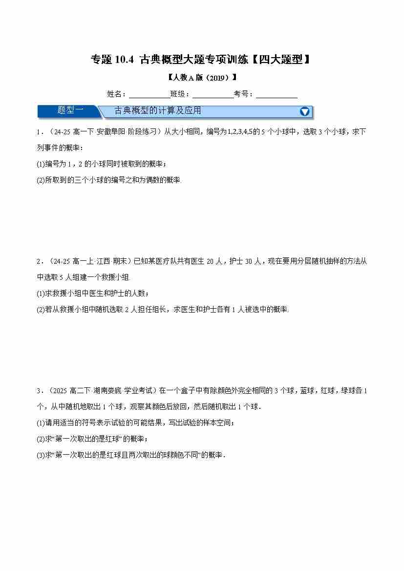 专题10.4 古典概型大题专项训练(四大题型)(举一反三)(人教A版2019必修第二册)(学生版)