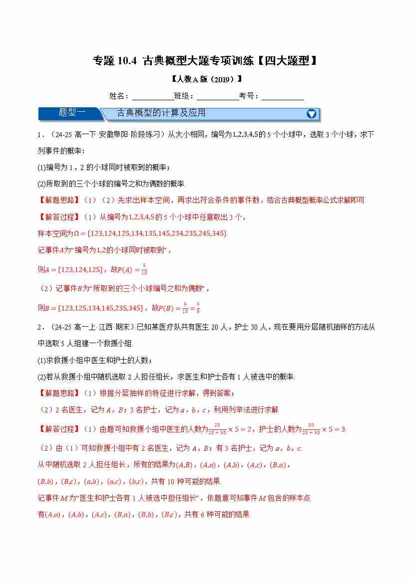 专题10.4 古典概型大题专项训练(四大题型)(举一反三)(人教A版2019必修第二册)(教师版)