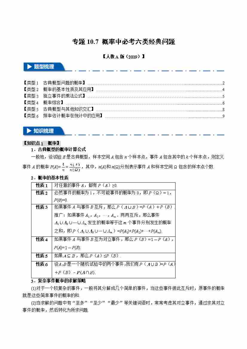 专题10.7 概率中必考六类经典问题(举一反三)(人教A版2019必修第二册)(学生版)