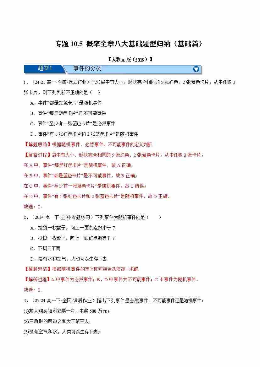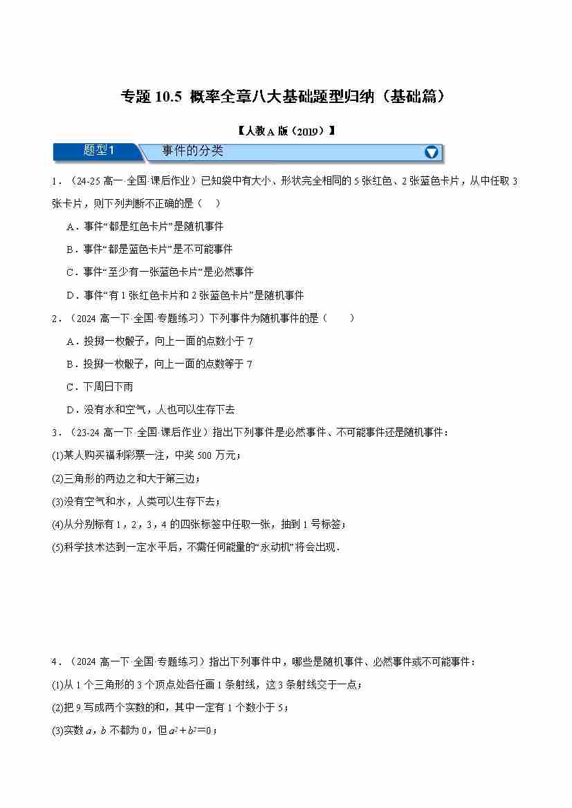 专题10.5 概率全章八大基础题型归纳(基础篇)(举一反三)(人教A版2019必修第二册)(学生版)