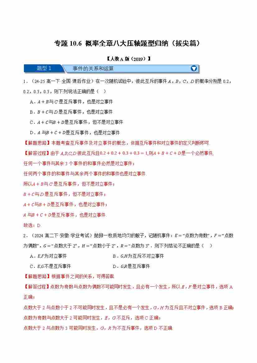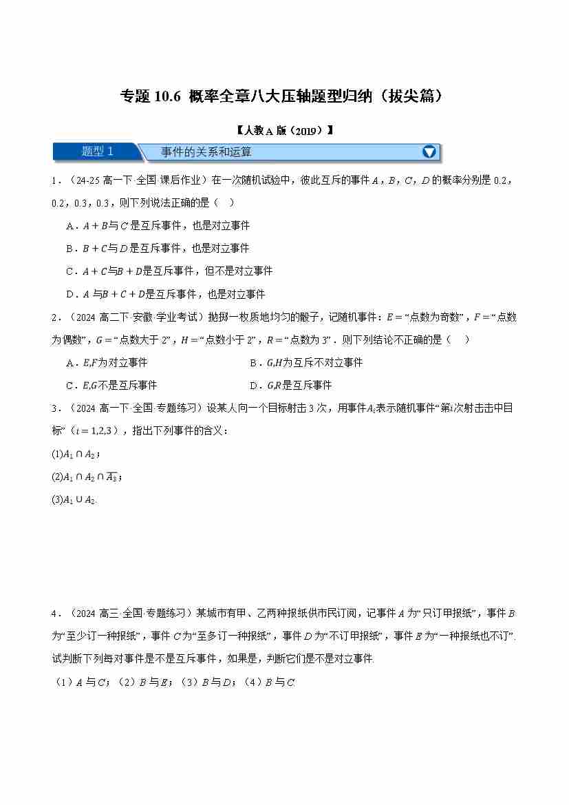 专题10.6 概率全章八大压轴题型归纳(拔尖篇)(举一反三)(人教A版2019必修第二册)(学生版)
