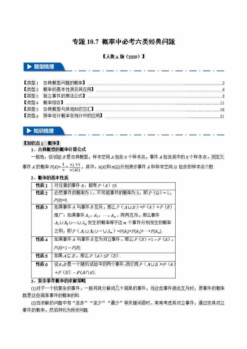 专题10.7 概率中必考六类经典问题(举一反三)(人教A版2019必修第二册)(教师版)