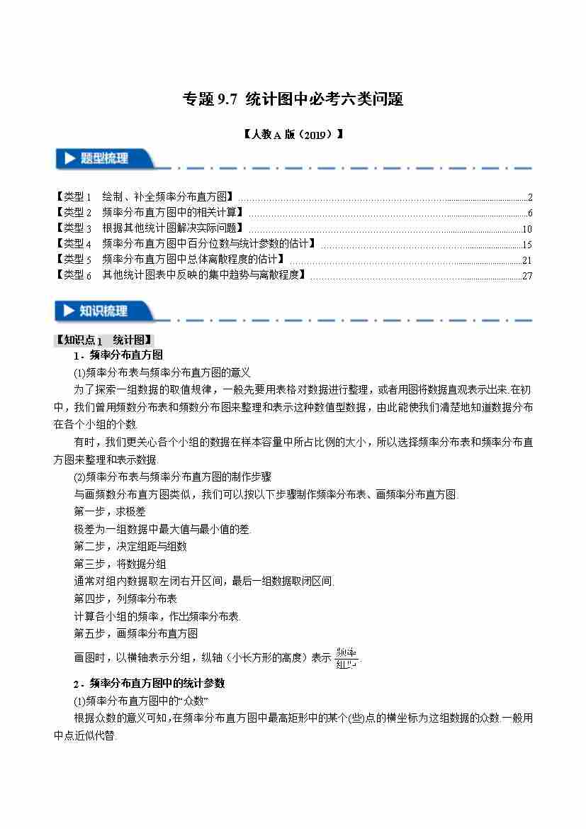 专题9.7 统计图中必考六类问题(举一反三)(人教a版2019必修第二册)(学生版)
