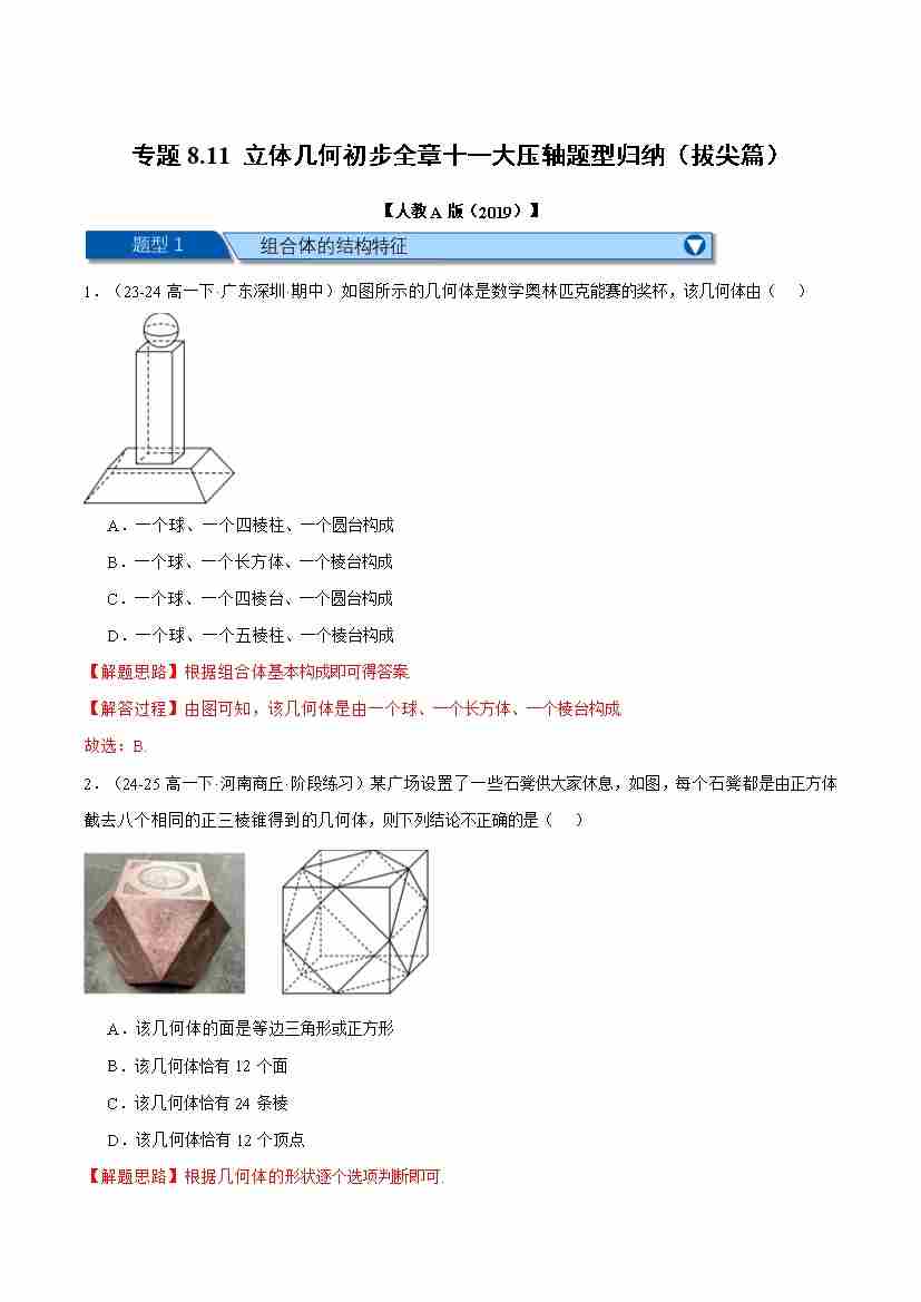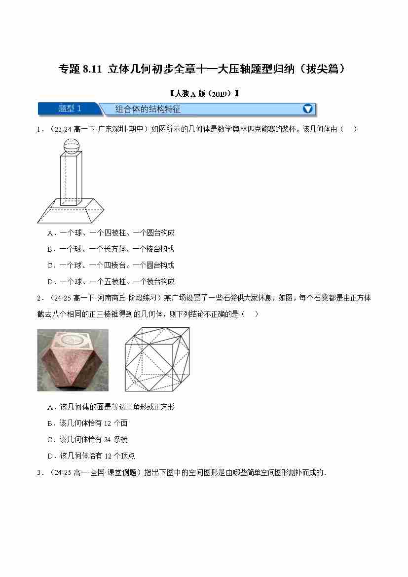 专题8.11 立体几何初步全章十一大压轴题型归纳(拔尖篇)(举一反三)(人教A版2019必修第二册)(学生版)