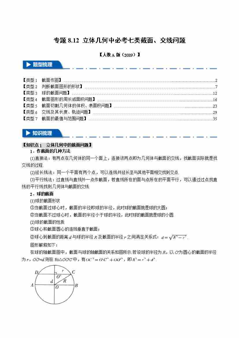 专题8.12 立体几何中必考七类截面、交线问题(举一反三)(人教A版2019必修第二册)(学生版)