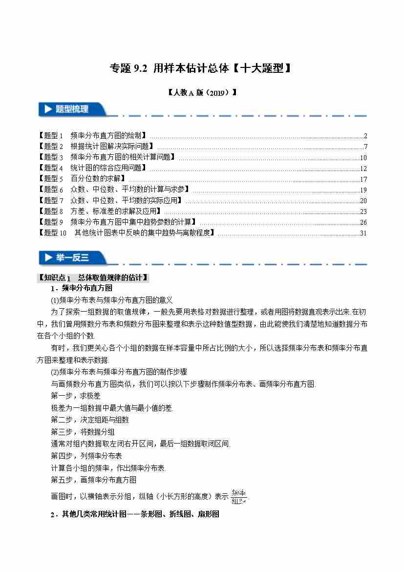 专题9.2 用样本估计总体(十大题型)(举一反三)(人教A版2019必修第二册)(学生版)