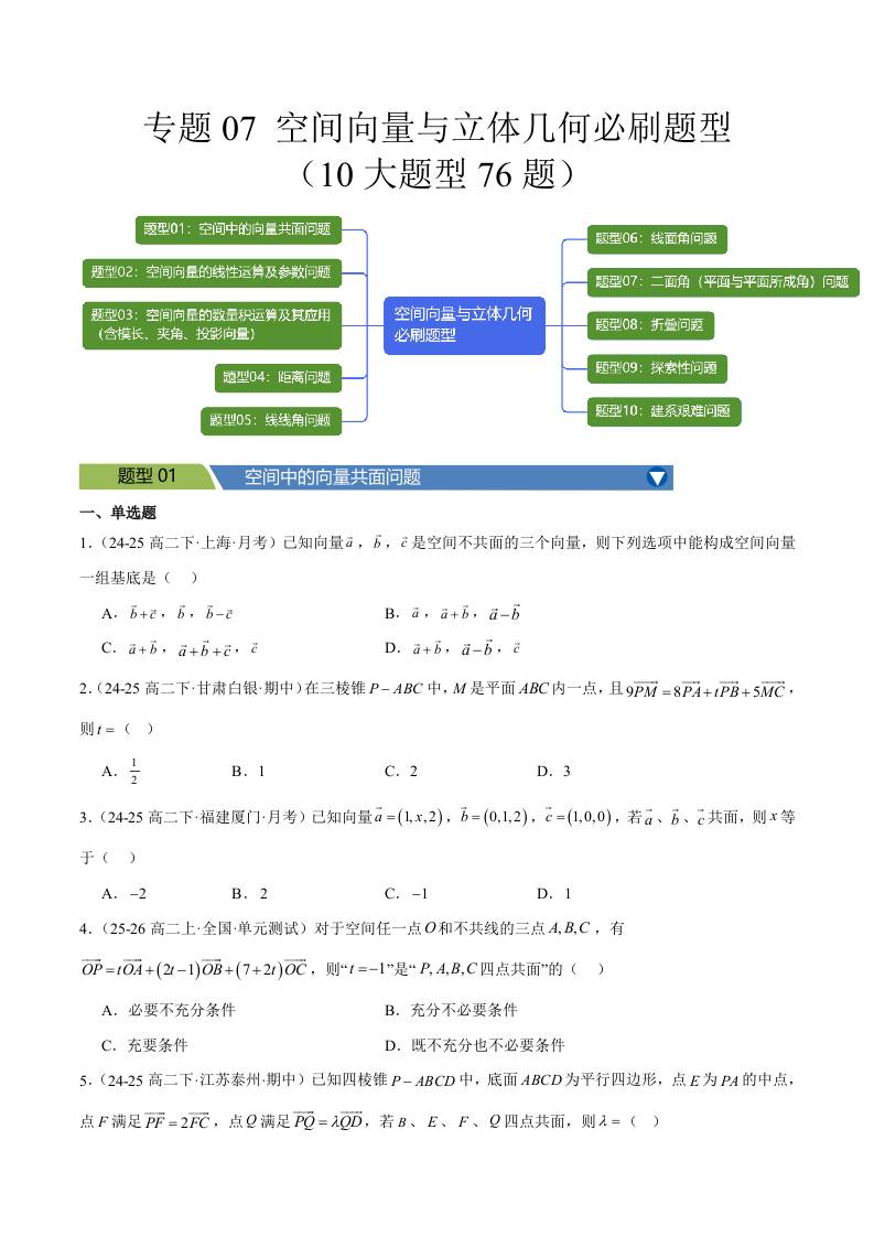 专题07(最新模考好题)空间向量与立体几何必刷题型(10大题型76题)(学生版)