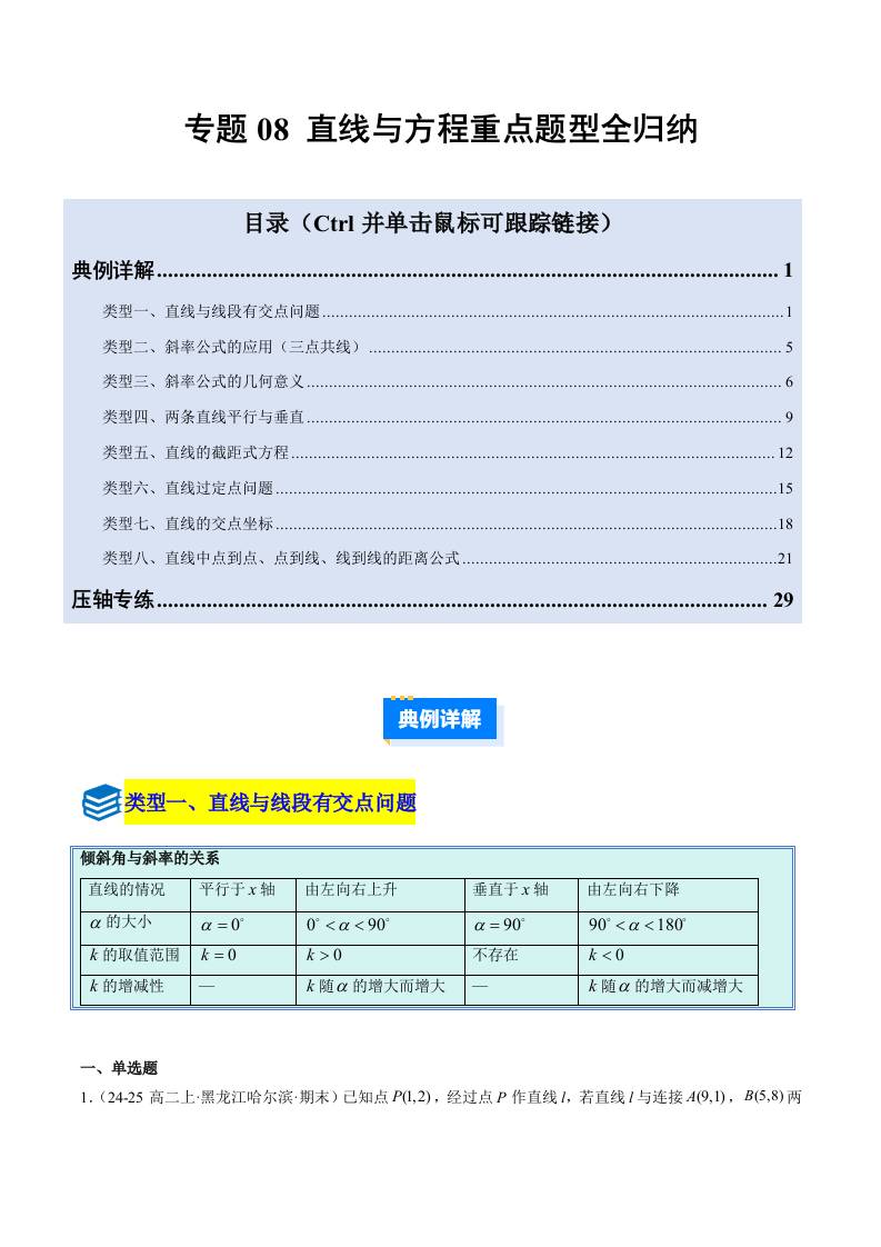专题08 直线与方程重点题型全归纳(压轴题8大类型专项训练)(学生版)