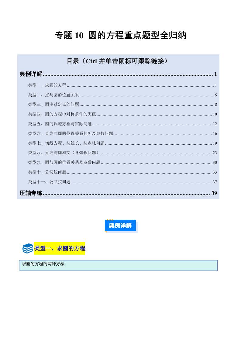 专题10 圆的方程重点题型全归纳(压轴题11大类型专项训练)(学生版)