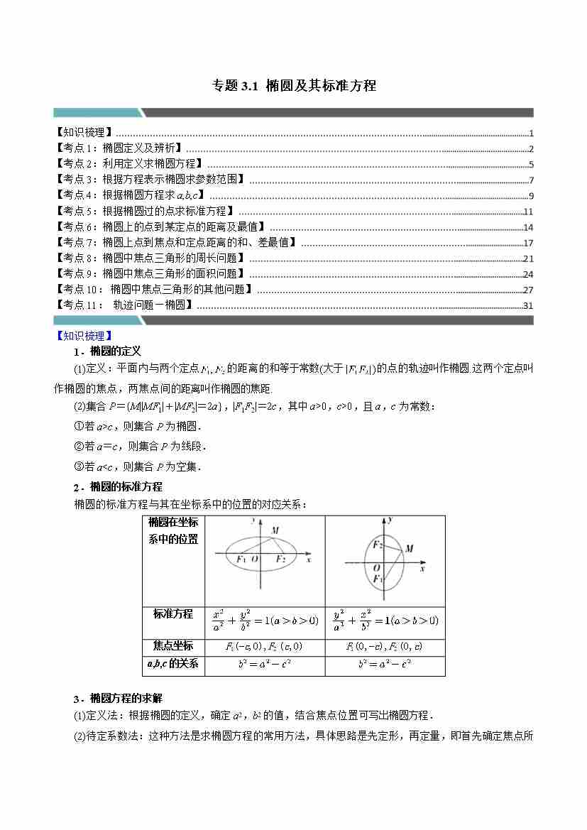 专题3.1 椭圆及其标准方程(11类必考点)(学生版)