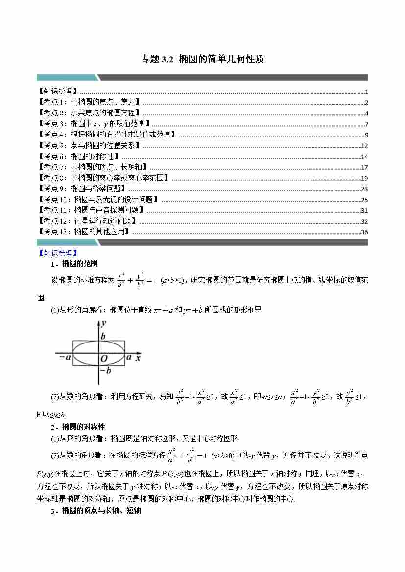 专题3.2 椭圆的简单几何性质(13类必考点)(学生版)