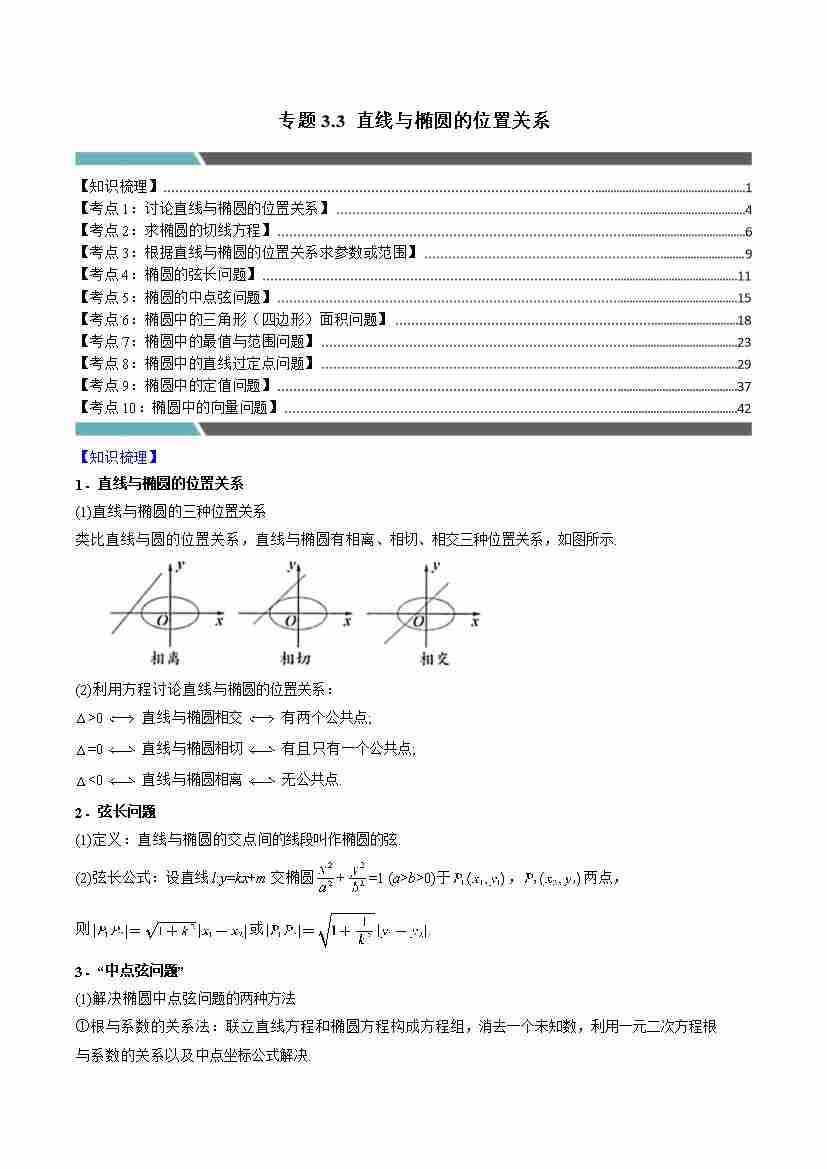 专题3.3 直线与椭圆的位置关系(10类必考点)(学生版)
