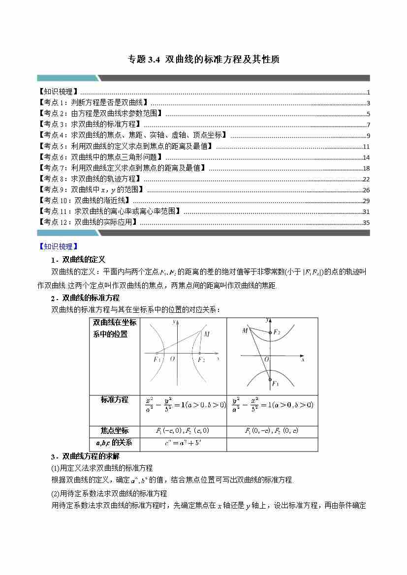 专题3.4 双曲线的标准方程及其性质(12类必考点)(学生版)