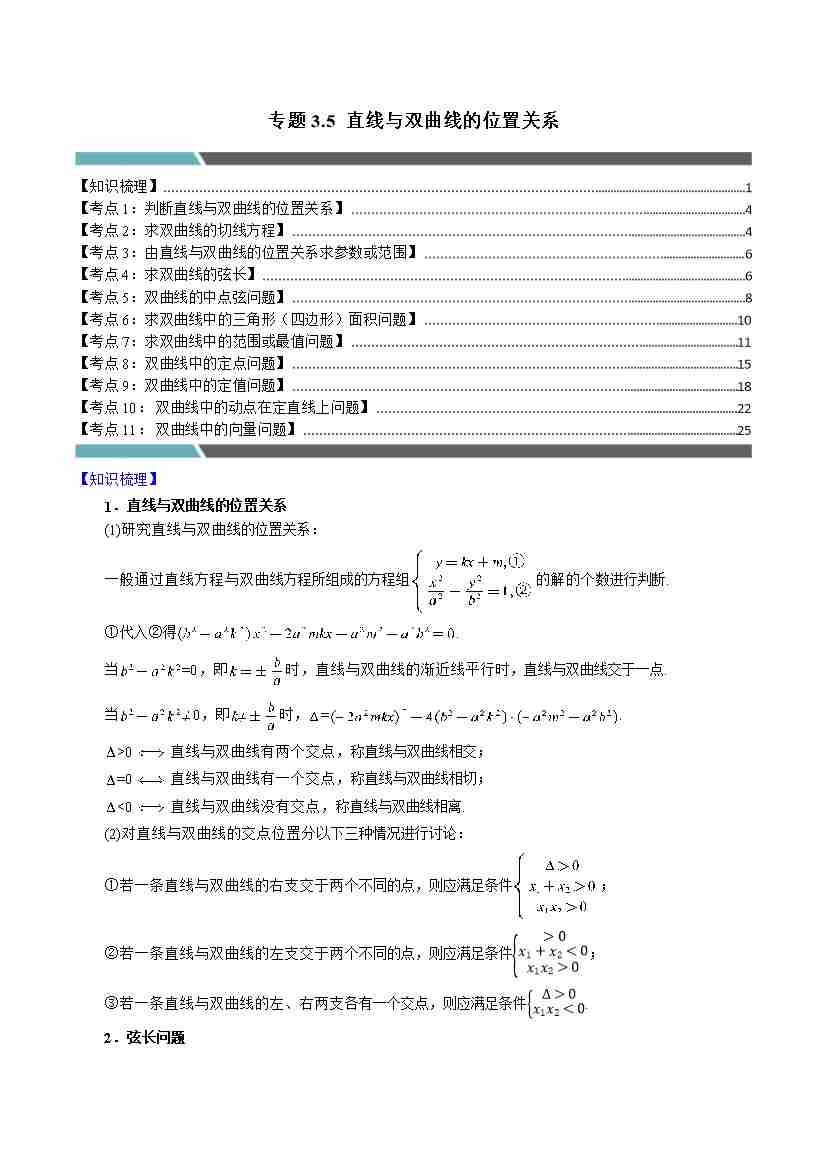 专题3.5 直线与双曲线的位置关系(12类必考点)(学生版)