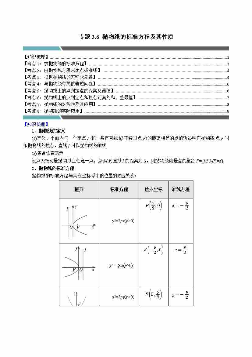 专题3.6 抛物线的标准方程及其性质(9类必考点)(学生版)