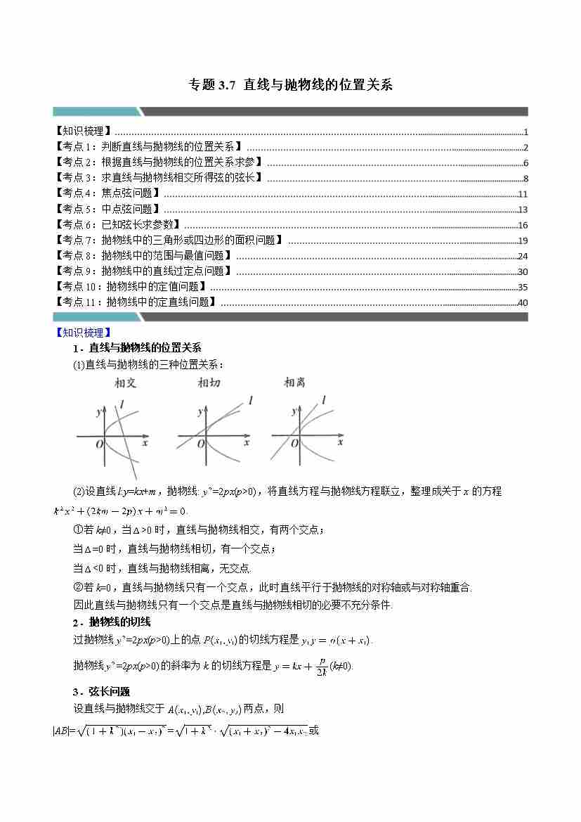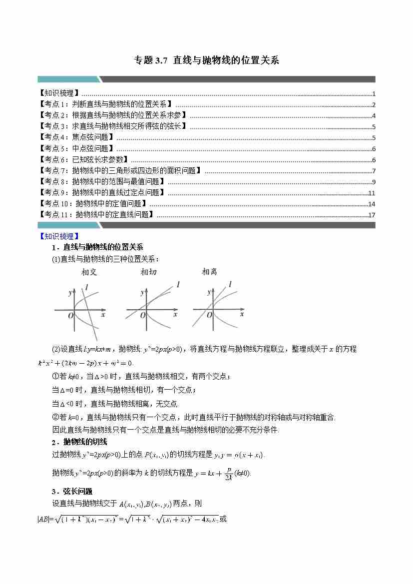 专题3.7 直线与抛物线的位置关系(11类必考点)(学生版)